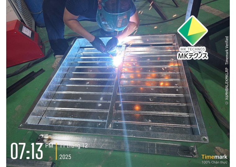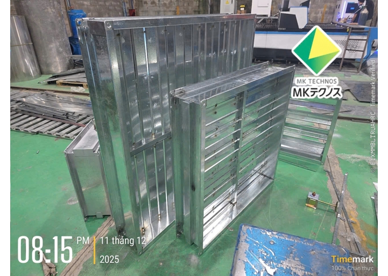 Thân van: Làm từ tôn mạ kẽm hoặc Inox, có độ dày tương đương với hệ thống ống gió lắp đặt ($0.58mm - 1.15mm$).