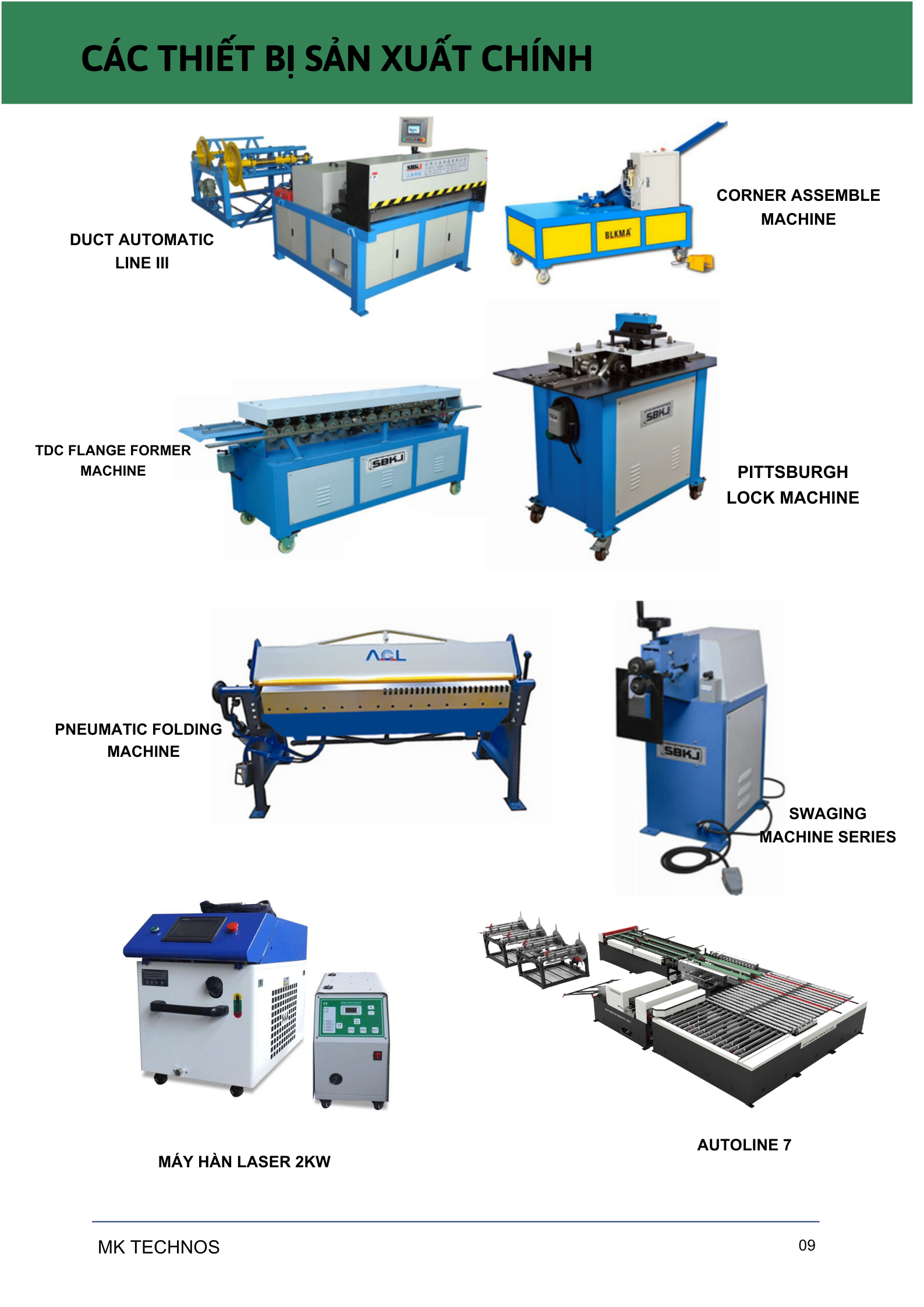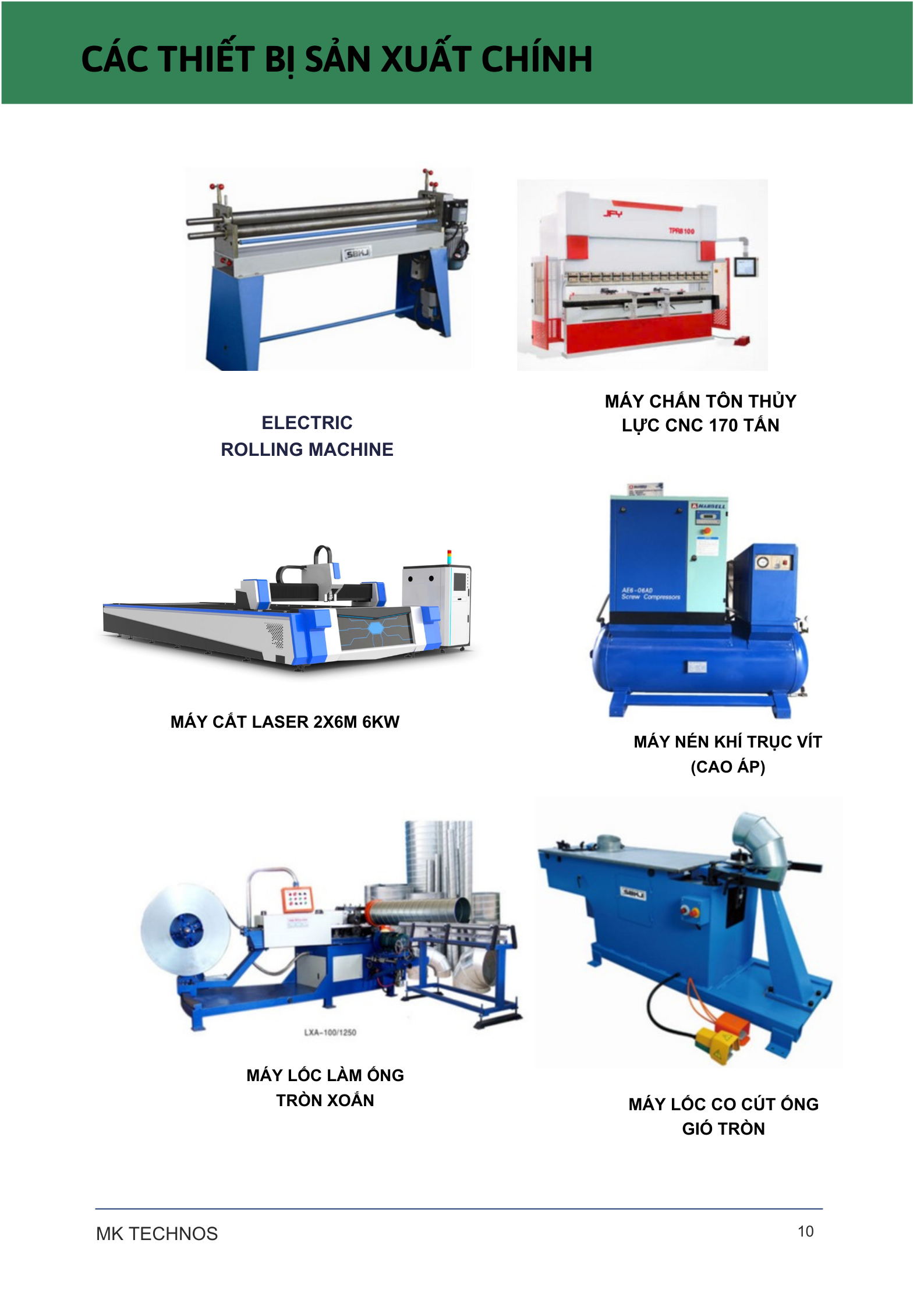 - Xưởng sản xuất được trang bị máy cắt laser CNC, máy chấn CNC, máy autoline 7, máy ghép bích, máy cán gân ống gió, máy chạy ống tròn xoắn, máy làm phụ kiện ống tròn xoắn